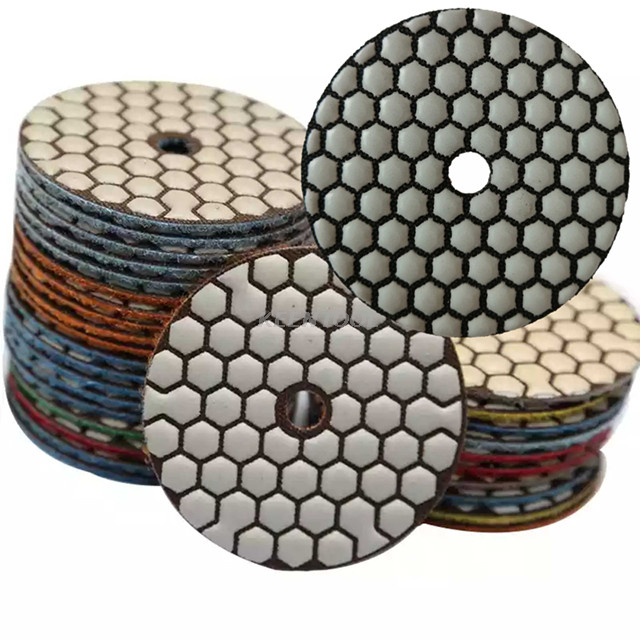 Las almohadillas de pulido de diamante flexibles se utilizan para mantener, reparar y renovar pisos de granito, mármol y piedra artificial, líquidos penetrantes o endurecedores y densificadores para pisos. Después de pulir y pulir en bruto y fino con las almohadillas de pulido, la superficie del piso mostrará un efecto de espejo.